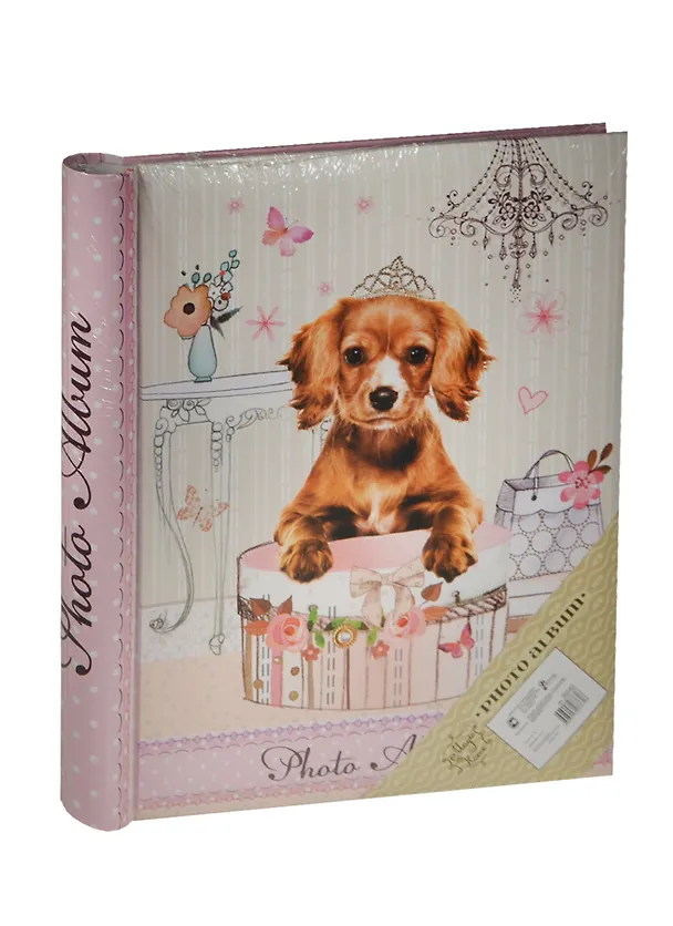 Обложка альбома выполнена из картона и оформлена изображением собачки. Внутренний блок содержит 10 листов форматом 22,5х28см на 40 фотографий. Листы из картона с клеевым покрытием и пленкой-ПВХ для закрепления фото, с креплением на гребне. Фотоальбом является универсальным подарком к любому празднику.