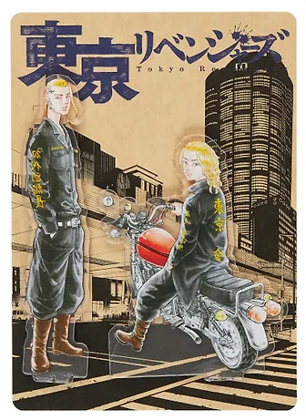 Фигурка акриловая Токийские мстители. Майки и Дракэн Непобедимый Майки и Дракэн — главная сила в Токийской группировке «Мандзи». Объединившись еще в младших классах, они вместе с друзьями создали один из легендарных байкерских клубов в манге «Токийские мстители». Оба страстно обожают мотоциклы и отлично в них разбираются. На акриловой фигурке Майки изображен на своем любимом мотоцикле «Хонда» CB250. И Майки, и Дракэн одеты в специальную байкерскую форму «Мандзи», которую для них пошил Мицуя.