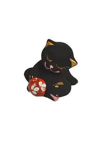 Фигурка декоративная керамика Котик с мячом черный (4х7х11) (707379)