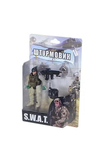 Фигурка из "Отряда S.W.A.T." с аксессуарами изготовленная из пластика порадует любого любознательного мальчишку. Ведь в детстве, каждый мальчик интересуется военными и любит поиграть в войну.