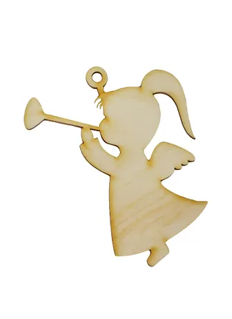 Фигурка-подвеска Ангел с трубой-2 (151883) (97х76х3мм) (игрушка из дерева) (упаковка)