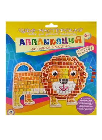 Фигурная мозаика Лев (2974) (картон. основа+дет. из ЭВА+глазки+4 магнита) (Чудо-мастерская) (6+) (упаковка)