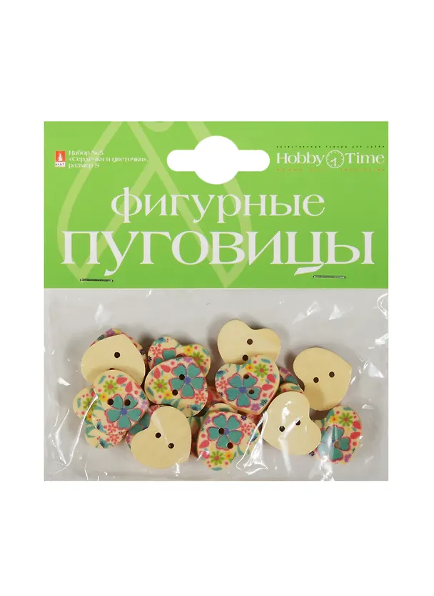 Фигурные пуговицы Набор № 5 Сердечки и цветочки (2-173) (упаковка)