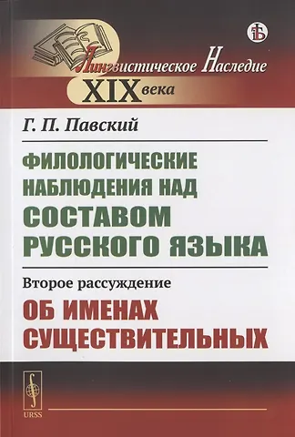 Вниманию читателей предлагается труд выдающегося русского филолога Г. П. Павского (1787–1863), в котором изложены его наблюдения над составом русского языка, рассуждения о русской грамматике. В настоящей книге представлено рассуждение автора об именах существительных. Рассматривается разделение имен существительных на первообразные и производные, описывается образование имен первообразных от "чистых глагольных корней". Детально рассматривается образование производных существительных и освещается значение различных "производственных букв и слогов", участвующих в их образовании. Излагаются правила склонения имен существительных, перечисляются признаки, по которым может быть определен падеж. От