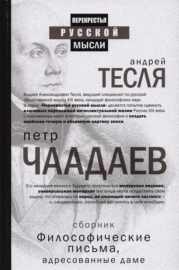 Современный читатель и сейчас может расслышать эхо горячих споров, которые почти два века назад вели между собой выдающиеся русские мыслители о судьбах России и ее историческом пути. В книгах серии «Перекрестья русской мысли с Андреем Тес-лей» делается попытка создать точную и объемную картину интеллектуальной жизни России XIX века. Петр Яковлевич Чаадаев - колоссальная фигура эпохи, человек, оказывавший огромное влияние на своих современников и по сей день стоящий особняком в картине общественной мысли России. Данный сборник включает себя все главные тексты Чаадаева: «Философические письма», «Апологию сумасшедшего» и избранные письма.