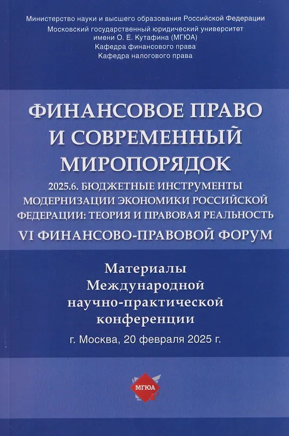 Финансовое право и современный миропорядок. VI Финансово-правовои форум «2025.6. Бюджетные инструменты модернизации экономики Российской Федерации: теория и правовая реальность». Материалы Международной научно-практической конференции