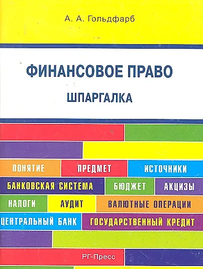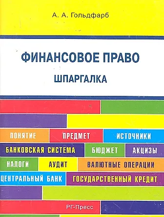 Анастасия Гольдфарб «Финансовое право. Шпаргалка: учебное пособие.» и выбрать удобный способ его получения: самовывоз, доставка курьером