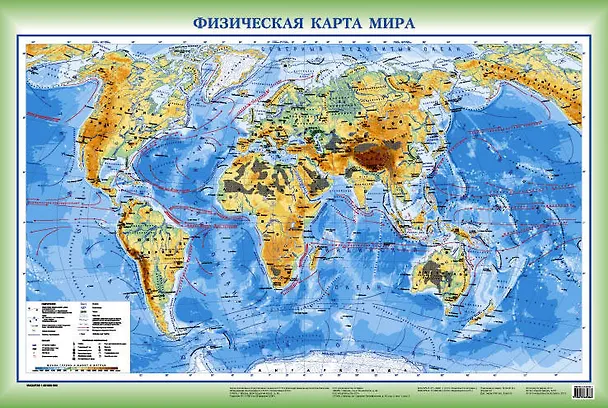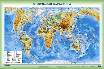 Физическая карта мира + Политич. карта мира (2 стор.) (А1) (1:42 млн) (100х70)