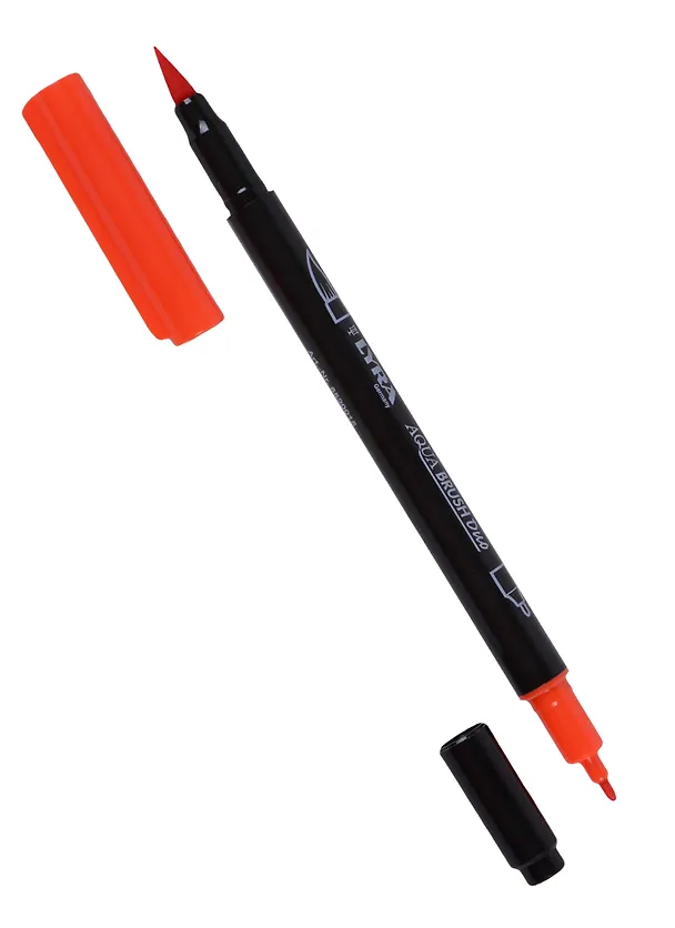LYRA Aqua Brush Duo - двойной фломастер с эффектом рисунка кистью. Для художников/дизайнеров/любителей и профессионалов. Чернила на водной основе, бриллиантовые цвета. Разные техники нанесения рисунка. Темно-оранжевый.
