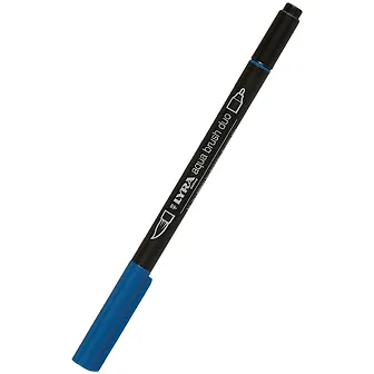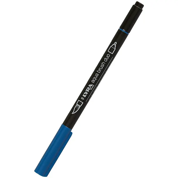 LYRA Aqua Brush Duo - двойной фломастер с эффектом рисунка кистью. Для художников/дизайнеров/любителей и профессионалов. Чернила на водной основе, бриллиантовые цвета. Разные техники нанесения рисунка. Прусский синий.