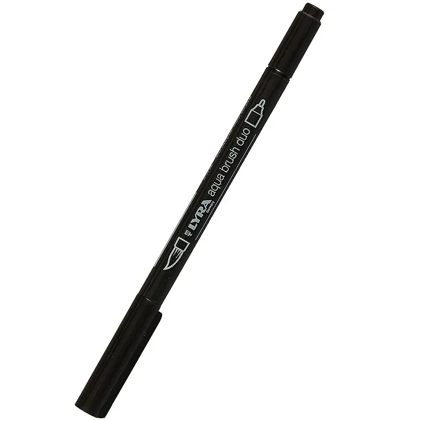LYRA Aqua Brush Duo - двойной фломастер с эффектом рисунка кистью. Для художников/дизайнеров/любителей и профессионалов. Чернила на водной основе, бриллиантовые цвета. Разные техники нанесения рисунка. Черный медиум.