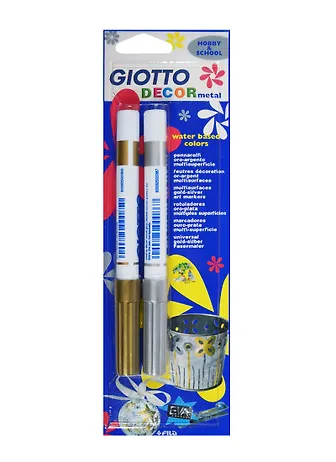 Фломастеры 02цв "Giotto Decor Metal" для декорирования с метал. чернилами (золотой, серый), Giotto