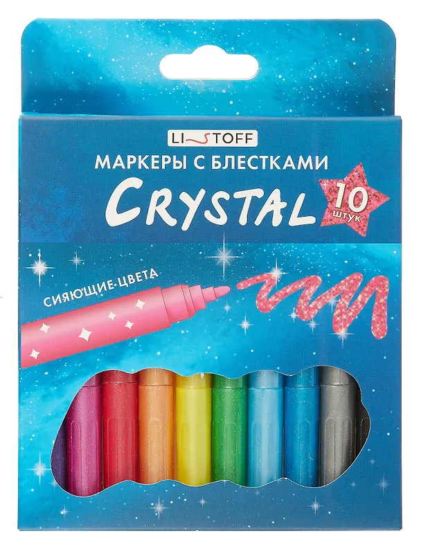 Для оформления всяких открыточек фломастеры с блестками - то что надо. Поэтому как увидела в магазине, сразу купила без раздумий. Тем более, что в этом наборе аж 10 цветов (обычно меньше бывает). А чем больше вариантов расцветки - тем лучше. Не знаю, как надолго их хватит, но пока рисуют очень красиво. Блестки дают мягкое мерцание, аляписто не выглядит.