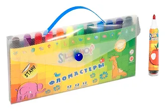 Фломастеры 12цветов "EMOTIONS" мини-штампы, вентельный колпачок, в плотной сумочке, Silwerhof