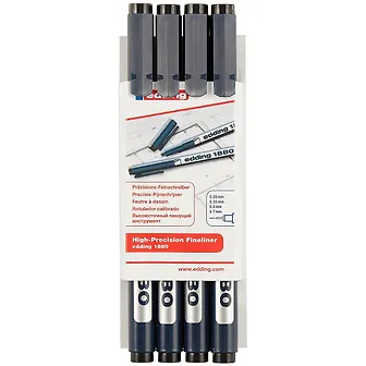 Фломастеры 4шт профессиональные для черчения (0.1мм, 0.3мм, 0.5мм, 0.7мм), Edding . .