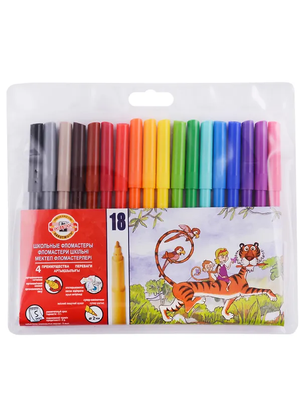 Набор фломастеров для детского творчества. Фломастеры с эргономичной трехгранной зоной обхвата. Чернила легко отстирываются с одежды, смываются водой. Пишущий узел - 2 мм. Упаковка - ПВХ.