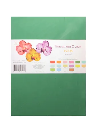 Фоамиран Рукоделие (F2-05) (зеленый) (5 листов) (2мм) (21х29,7см) (упаковка)