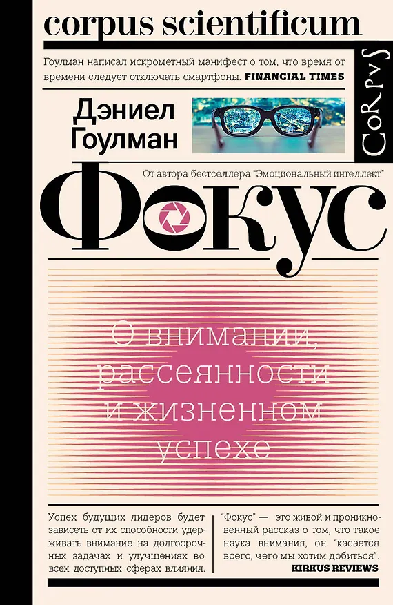 В книге “Фокус. О внимании, рассеянности и жизненном успехе” психолог и журналист Дэниел Гоулман предлагает новаторский взгляд на ценнейший в наше время ресурс, таящий в себе секрет успешной работы и самореализации, — внимание. Сочетая передовой теоретический поиск с примерами из практики, автор рассматривает феномен внимания в самых разных аспектах, предлагая серьезный и давно назревший разговор об этой малоизученной и недооцененной способности нашего мозга. Для того чтобы выжить в сегодняшнем мире, полном самых разных отвлекающих факторов, способность заострять фокус крайне необходима, — убедительно показывает Гоулман.