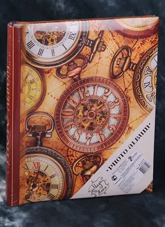Фотоальбом ХРОНОГРАФЫ с обложкой из картона арт.41277 (24*29см, с листами из картона с клеевым покрытием и пленкой-ПВХ для закрепления фото, с креплением на гребне(10 листов)