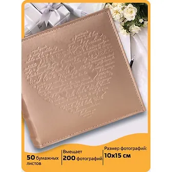 Фотоальбом BRAUBERG "I love you" на 200 фото 10*15 см, под кожу, бум. стр, переплет, бокс