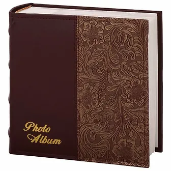 Фотоальбом BRAUBERG на 300 фото 10*15 см, под кожу, бумажные страницы, бокс, бордо+бронза (390681)