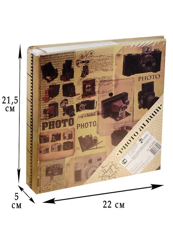 Фотоальбом на 200 фотографий "ВИНТАЖНЫЕ ФОТОАППАРАТЫ" арт.41269 (22*22см, обложка из картона, листы из бумаги c кармашками-держателями из ПВХ для фото, с полями для записей и книжным переплетом), 50 листов / 22*22 арт.41269