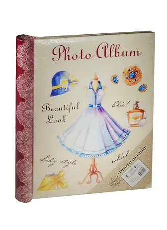 Обложка альбома выполнена из картона и оформлена изображением платья, дамских шляпок. Внутренний блок содержит 10 листов форматом 24х29см на 40 фотографий. Листы из картона с клеевым покрытием и пленкой-ПВХ для закрепления фото, с креплением нагребне. Фотоальбом является универсальным подарком к любому празднику.