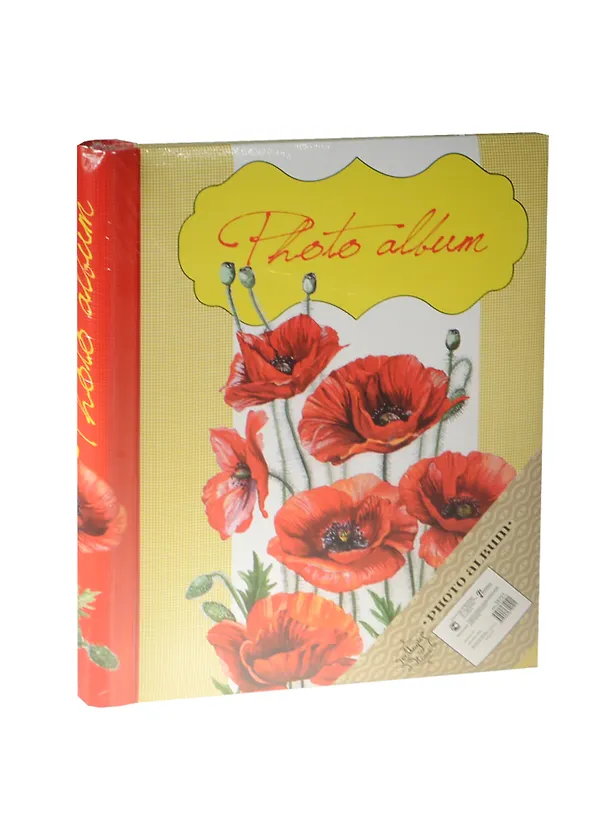 Обложка альбома выполнена из картона и оформлена изображением маков. Внутренний блок содержит 10 листов форматом 24х29см на 40 фотографий. Листы из картона с клеевым покрытием и пленкой-ПВХ для закрепления фото, с креплением на гребне. Фотоальбом является универсальным подарком к любому празднику.
