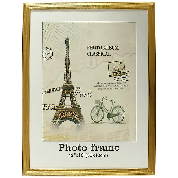 Очень красивая фоторамка, в которой багет выглядит так, будто покрыт позолотой. На самом деле, он пластиковый, но отлично передает игру света. Рамка сделана качественно, металлические крепления по всему ее периметру надежно удерживают подложку из прессованного картона. Продается в хорошо запаянной пленке. Я приобрела рамку для алмазной вышивки, чтобы она была защищена от пыли пластиковым стеклом.