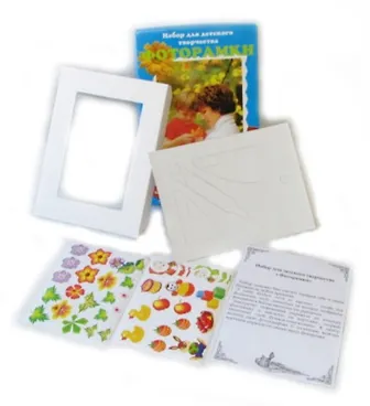 Набор для детского творчества «Фоторамки». У тебя есть красивая фотография? Конечно же есть! Сделай фоторамку своими руками, а потом вставь в неё любимую фотографию. Её можно подарить другу на память. Всё, что тебе нужно - это ножницы и клей. Все декоративные элементы уже есть в коробке. Ну а если ты проявишь творческую инициативу и добавишь что-либо по своему усмотрению получиться самая оригинальная фоторамка! В набор входит: заготовка для фоторамки из картона, состоящая из двух частей; декоративные элементы на двух листиках самоклеющейся бумаги. Изготовлено: картон Размер коробки: 19 х 13 см Производство: Россия