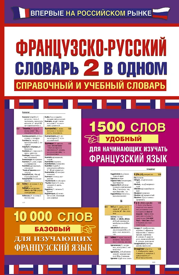 Французско-русский словарь: 2 в одном: справочный и учебный словарь: 10000 слов