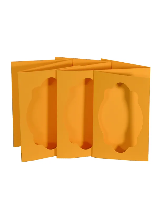 Набор тройных открыток с овальным фигурным окошком цвета "Шафрановый" для творчества и создания дизайнерских поделок.