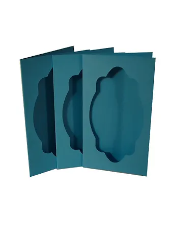 Набор тройных открыток с овальным фигурным окошком цвета "Васильковый" для творчества и создания дизайнерских поделок.
