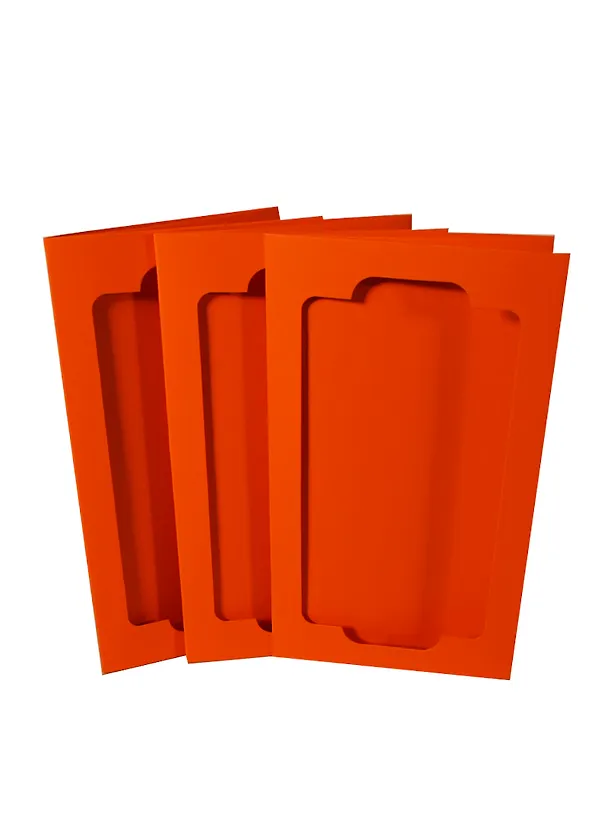 Набор тройных открыток с прямоугольным фигурным окошком цвета "Мандариновый" для творчества и создания дизайнерских поделок.