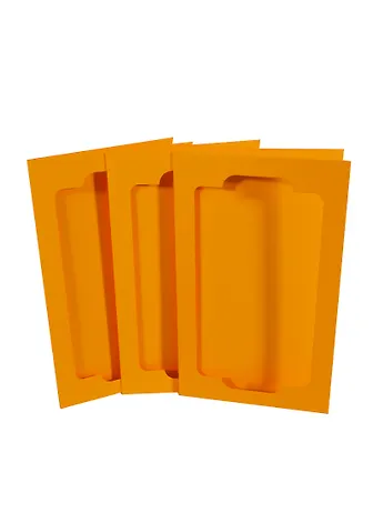 Набор тройных открыток с прямоугольным фигурным окошком цвета "Шафрановый" для творчества и создания дизайнерских поделок.