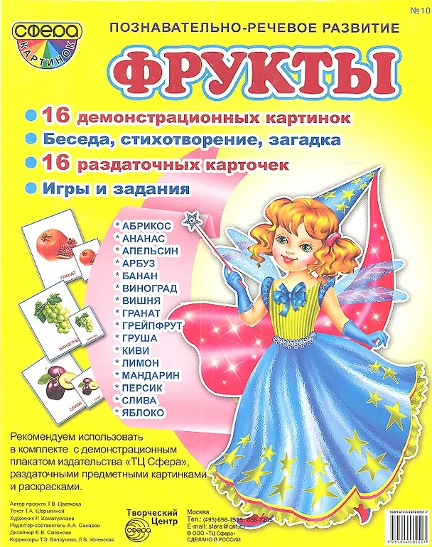 Татьяна Цветкова, Татьяна Цветкова «Фрукты. 16 демонстрационных картинок. 16 раздаточных карточек» и выбрать удобный способ его получения: самовывоз, доставка курьером