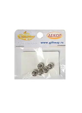 Фурнитура металл бусина Роза круглая серебро (00010221) (5 шт) (10х7мм) (10 г/уп.)
