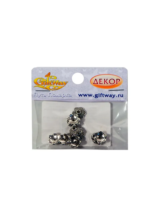 Фурнитура металл колпачок Бол. цветок серебро (00009357) (10шт) (12х4мм) (10г) (упаковка)