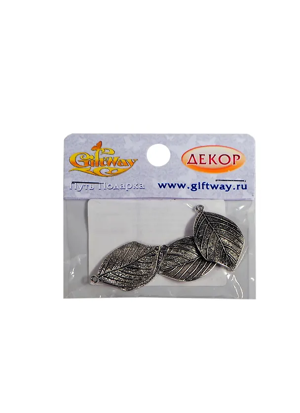 Фурнитура металл подвеска Лист серебро (00009396) (4шт) (34х22х4мм) (10г) (упаковка)