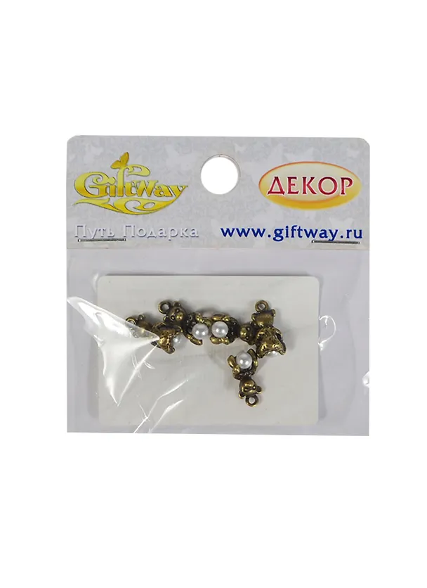 Фурнитура металл подвеска Мишка с шариком латунь (00010208) (5шт) (15х7мм) (5гр/уп)