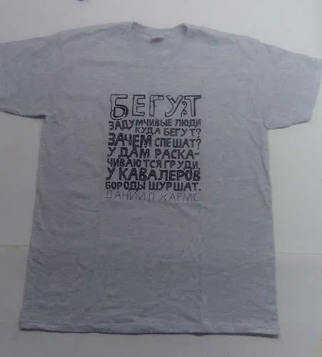 Футболка с принтом "Бегут задумчивые люди" (Д.Хармс)