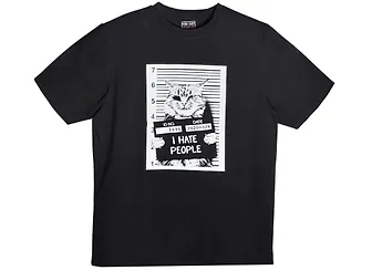 Футболка Кот I hate people (черная) (текстиль) (one size) (ФЧ2021-006)