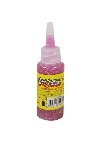 Описание: Гель розового цвета, с блестками, предназначен для рисования, декорирования поделок, открыток, игрушек, одежды. С гелем детское творчество превращается в увлекательное занятие: благодаря блесткам краски сверкают на солнце и переливаются. Удобен в использовании: наносится на поверхность материала кисточкой или, благодаря особому носику и мягкому корпусу, выдавливается прямо из флакона. Легко смывается водой, безопасен для здоровья детей.