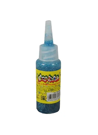 Описание: Гель синего цвета, с блестками, предназначен для рисования, декорирования поделок, открыток, игрушек, одежды. С гелем детское творчество превращается в увлекательное занятие: благодаря блесткам краски сверкают на солнце и переливаются. Удобен в использовании: наносится на поверхность материала кисточкой или, благодаря особому носику и мягкому корпусу, выдавливается прямо из флакона. Легко смывается водой, безопасен для здоровья детей.
