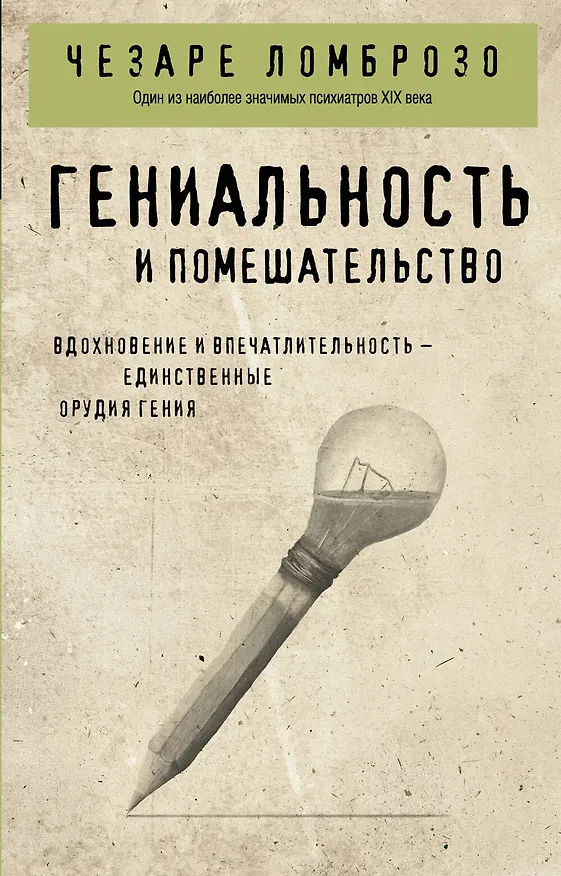 «Гениальность и помешательство» — главный и самый знаменитый труд Ломброзо. По его мнению, преступления совершают люди с набором определённых внешних данных и психологических характеристик. В своей работе Чезаре Ломброзо анализирует биографии известных личностей, пытаясь выявить общие черты и особенности их характера, а т