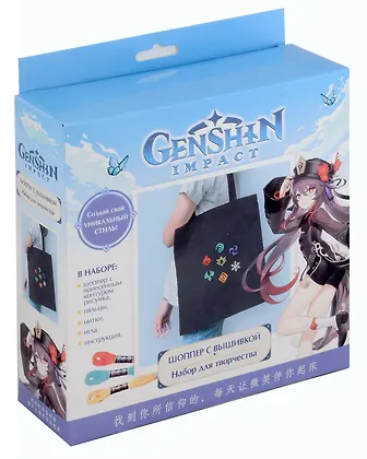 Красивый и прочный шоппер, цвет чёрный, насыщенный. Сумка в комплекте пришла уже полностью сшитая, рисунок нанесен белой краской.Вышивать легко, так как фрагменты небольшие, одноцветные, девочка 11 лет справилась сама. Ниток на 1 фрагмент не хватило, докупали.