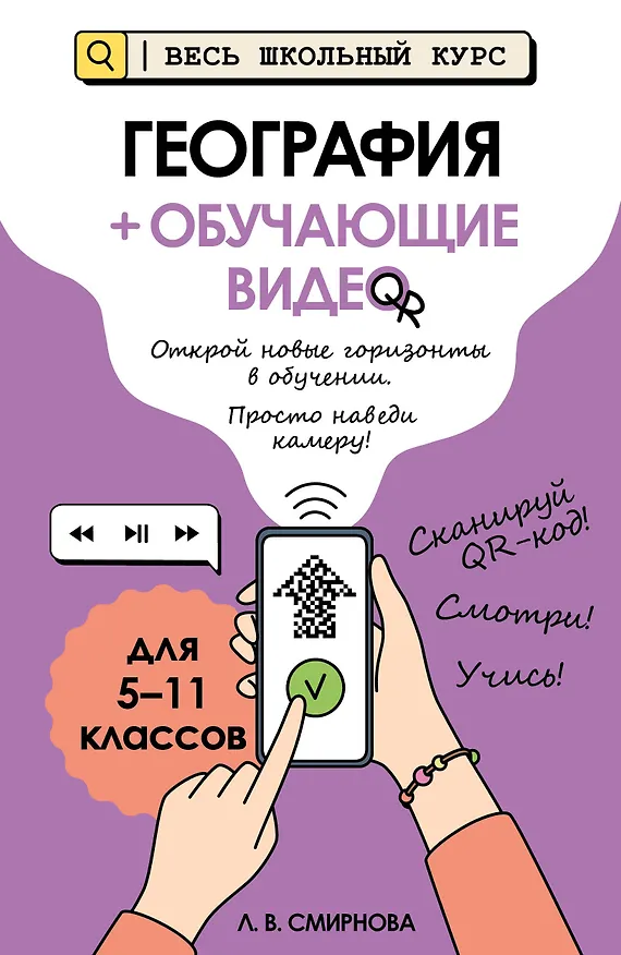 В пособии развёрнутый поясняющий материал по темам, особо актуальным для сдачи экзаменов, ОГЭ и ЕГЭ 2026, представлен в формате коротких видеороликов. Такой справочник для учеников 5, 6, 7, 8, 9, 10, 11 классов сделает процесс обучения живым и запоминающимся! Попробуй новый подход к обучению: смотри и учись в любое время и в любом месте! Также книжка будет полезна для занятий родителей с детьми.