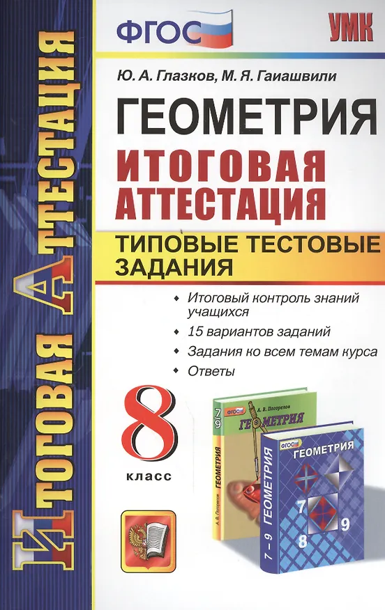 .Сборник содержит 15 тестов трех уровней сложности для итогового контроля по курсу геометрии 8 класса, а также ответы ко всем заданиям, рекомендации по подсчету баллов и выставлению отметок.