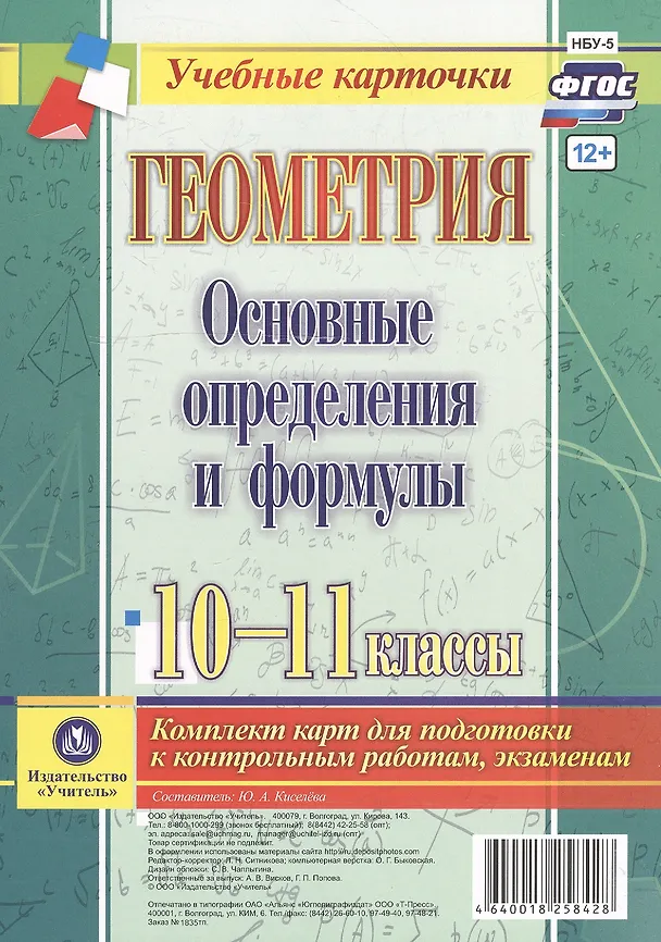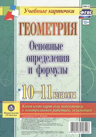 Геометрия. Основные определения и формулы. 10-11 классы. Комплект карт для подготовки к контрольным работам, экзаменам. ФГОС