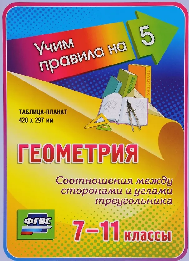 Геометрия. Соотношения между сторонами и углами треугольника. 7-11 классы. Таблица-плакат (420х297)